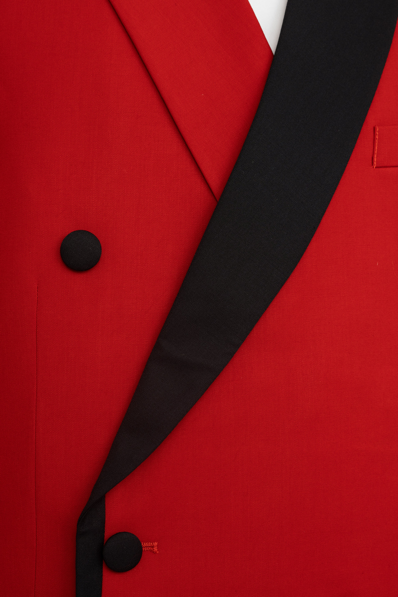 Grâce à sa structure et à son système de boutons croisés, cette veste permet de mettre en valeur la silhouette tout en apportant une dimension cérémoniale au costume. Elle se distingue notamment par :